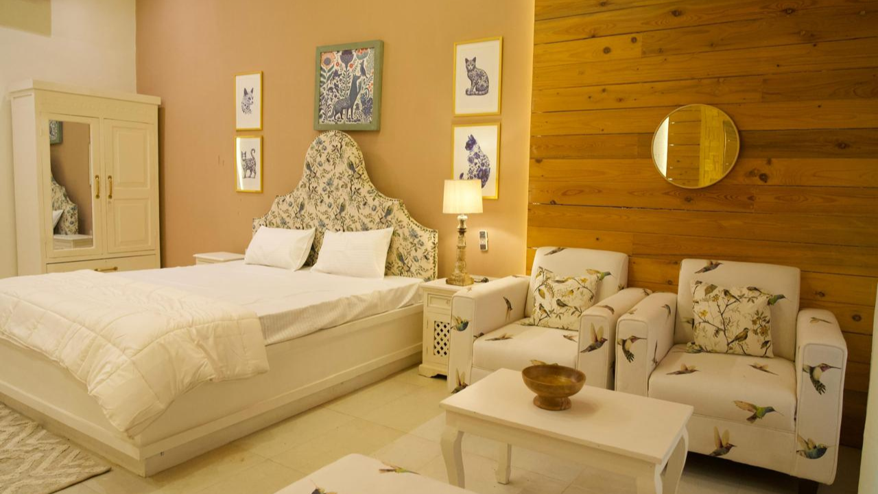 Surrounded by fragrant blooms and lush greenery, this suite brings the outdoors inside. Ideal for nature lovers, it features vibrant interiors and a garden view that soothes the soul.